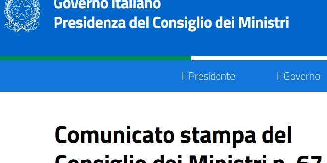 Mar182022BLOGcoronavirus-Covid-19Ultime dal BlogComunicato stampa del Consiglio dei Ministri n. 67 del 17 Marzo 2022: COVID-19, SUPERAMENTO DELLA FASE EMERGENZIALE: cliccate qui per leggere tutte le disposizioni dal sito del Governo Category: BLOG, coronavirus-Covid-19, Ultime dal Blog18 Marzo 2022Tags: fine emergenzaPost navigationPreviousPrevious post:Nuovo Bonus Carburanti ai dipendentiNextNext post:Pro Memoria: Assegno Unico e Universale dal 1° marzo 2022Related postsDecreto Whistleblowing D.lgs 24/202323 Ottobre 2023Nuova soglia € 3000,00 fringe benefit-welfare 202324 Luglio 2023Decreto lavoro6 Luglio 2023Aumenti retributivi CCNL Meccanica PMI26 Giugno 2023Decreto Lavoro (D.L. n.48/2023): una breve sintesi24 Maggio 2023Buona Pasqua!6 Aprile 2023